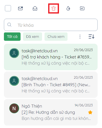 để “Chuyển vào thùng rác” với các thư đã chọn